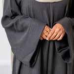 Layal features a flattering A-line cut, soft V-neck, and wide sleeves in a breathable cotton-linen blend. Designed in black and taupe, it’s perfect worn solo in warmer weather or layered for cooler days. A versatile staple that moves with you—day to night, season to season.