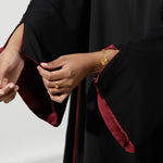 Elevate your wardrobe with our reversible abaya. Featuring two elegant colorways in one, this piece allows you to switch between tones to match your mood and occasion. Crafted from lightweight, breathable Harir Makhsood fabric, it drapes beautifully, offering a refined yet comfortable silhouette. Whether styled for a special gathering or everyday elegance, this piece ensures twice the style with a single design.